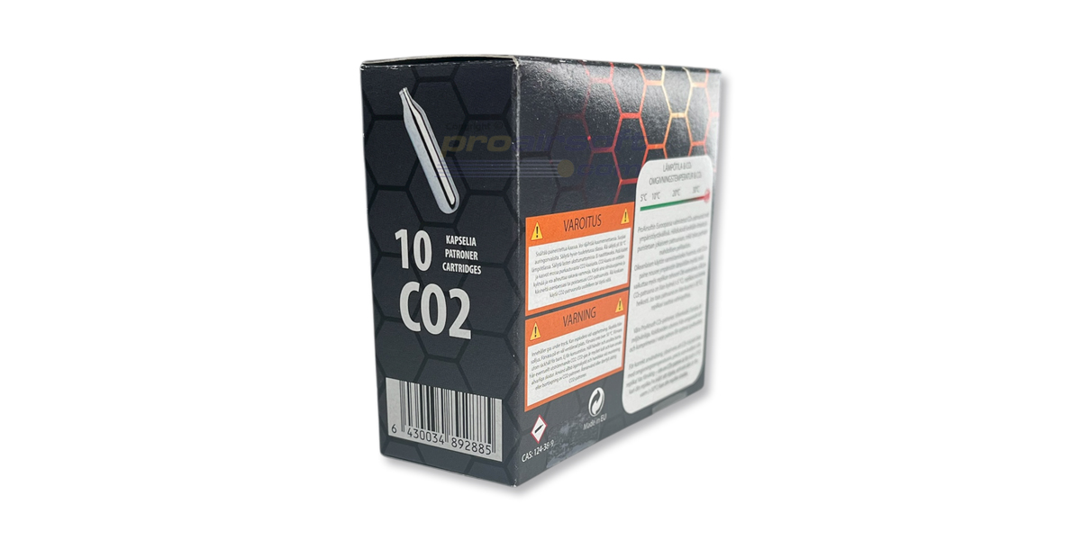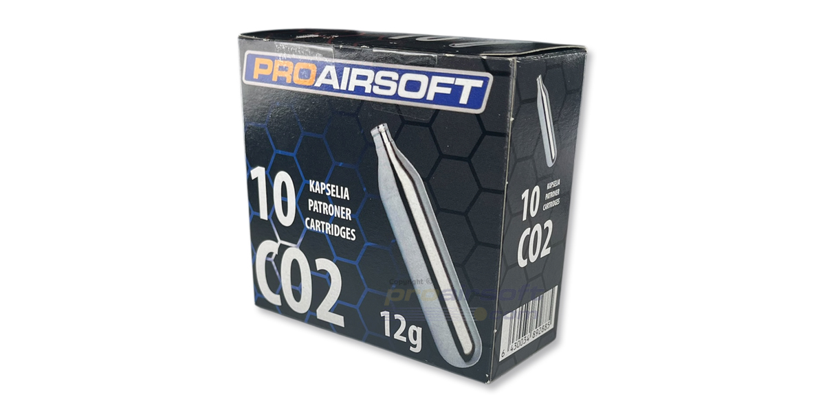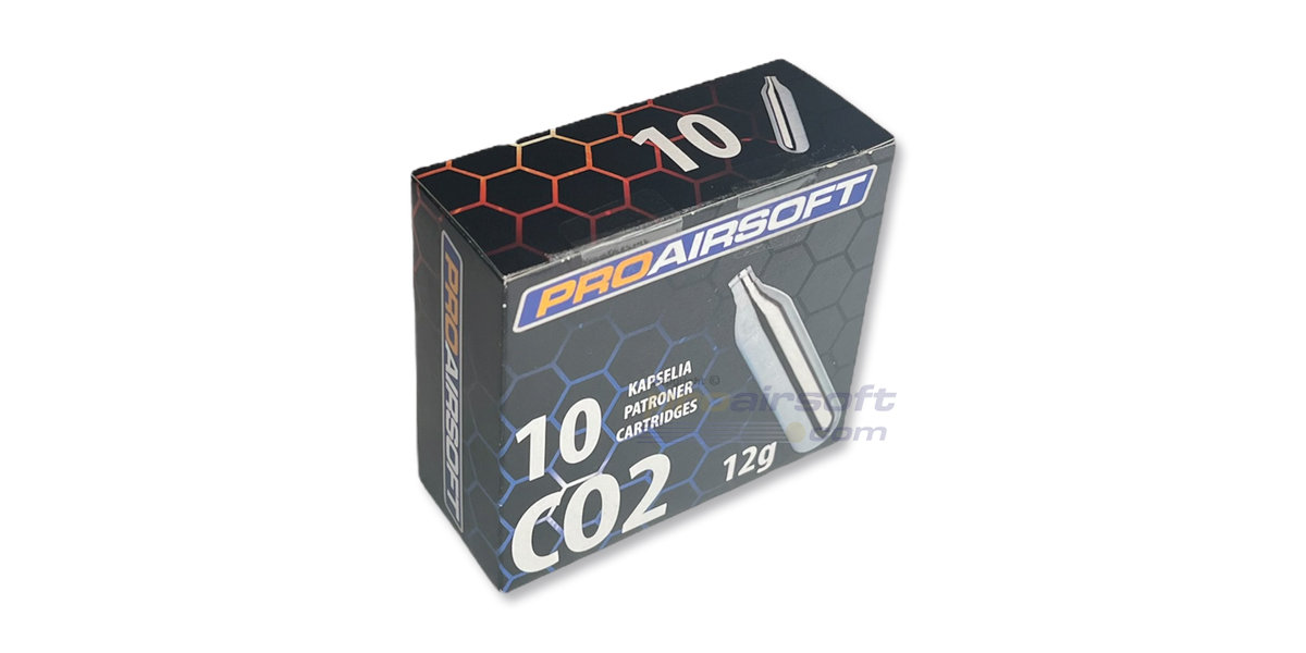 A 12g capsule suitable for all CO2-operated weapons in a convenient 10-piece package.