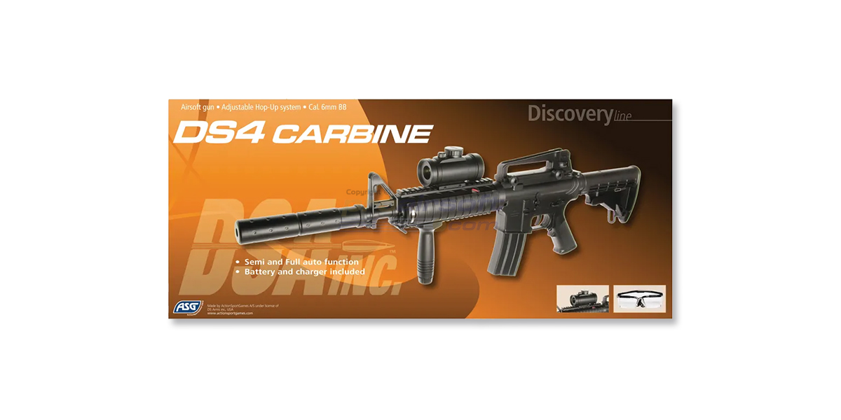 ASG DS4 7.2V on edullinen sähköinen airsoft-kivääri, joka on suunnattu erityisesti aloittelijoille ja satunnaiseen harrastamiseen. Malli perustuu legendaariseen M4/AR15-sarjaan ja on virallisesti DSArmsin lisensoima.