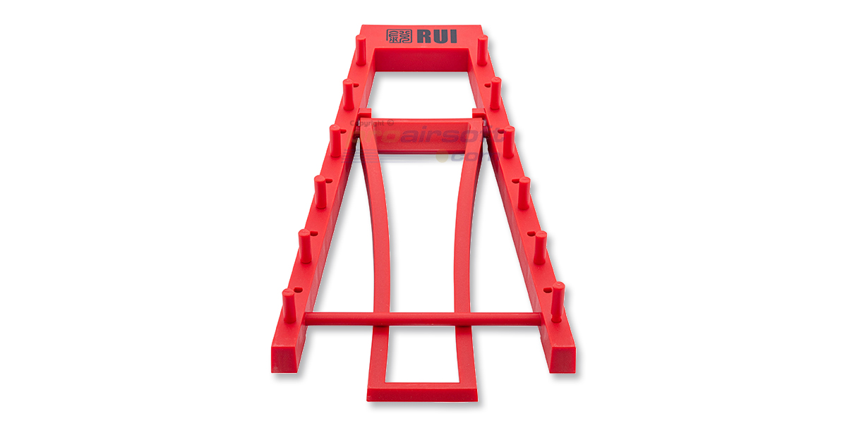 This red plastic knife stand offers a durable and attractive way to display up to six knives. Ideal for collectors, enthusiasts, or retailers who want to showcase their knives neatly and securely.