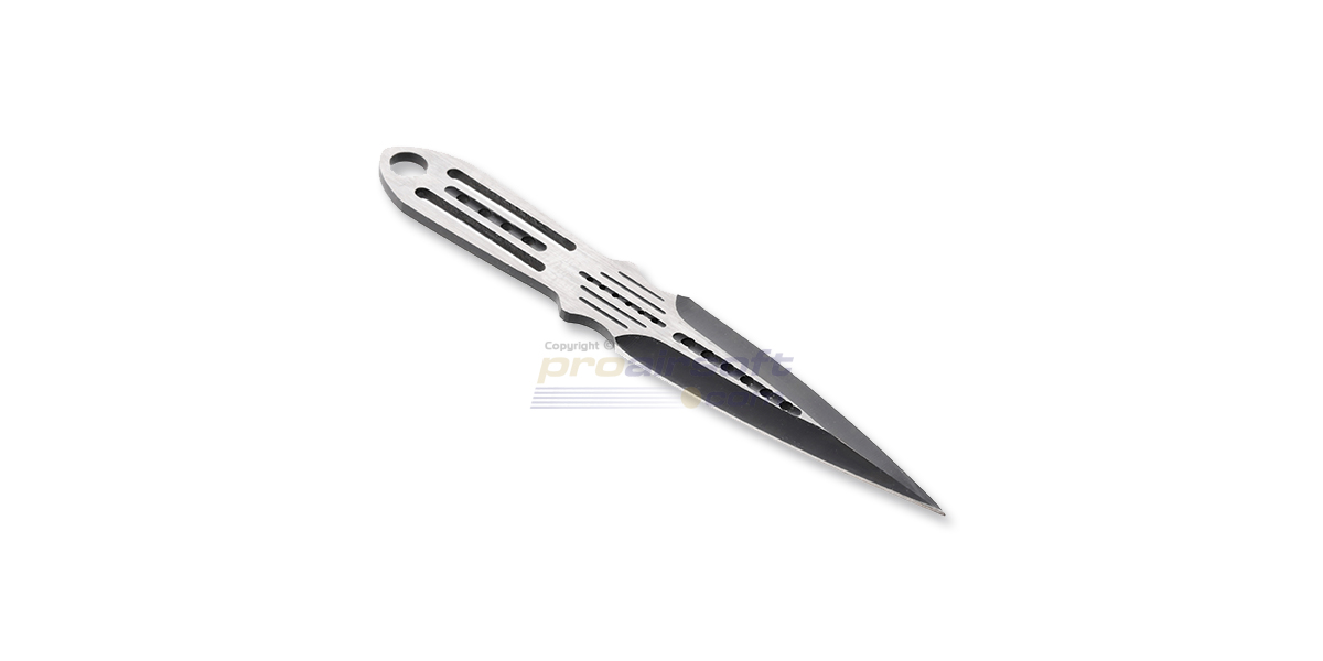 Its 15 cm dagger-style blade provides stable, straight flight characteristics, while the weight-reducing handle cutouts improve balance and deliver a smooth throwing rotation. A small protrusion mimicking a guard helps prevent fingers from sliding onto the blade during handling.