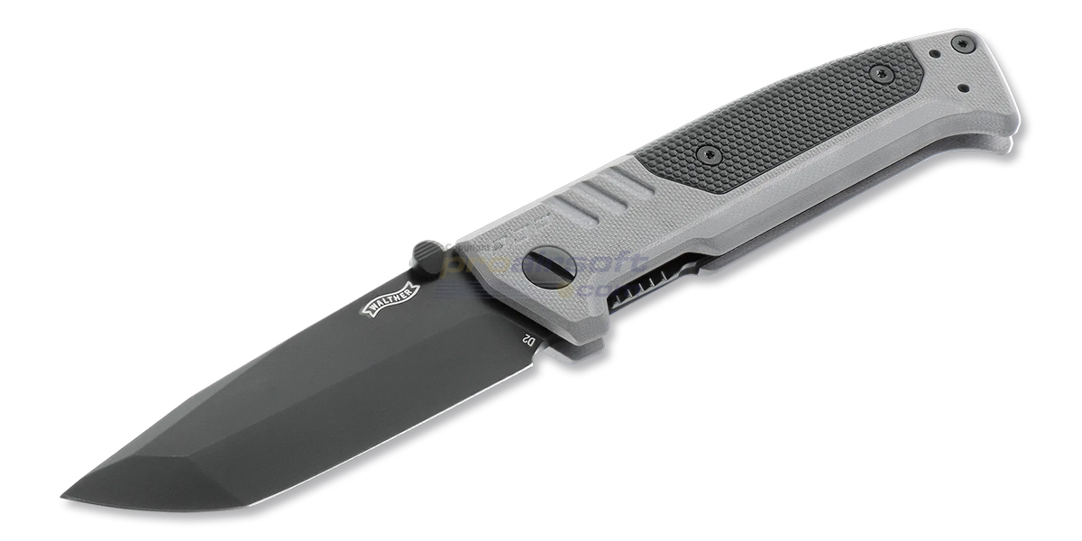Walther PDP Tanto Serrated Folding Knife — D2 Steel, Partially Serrated, GreyIn stock