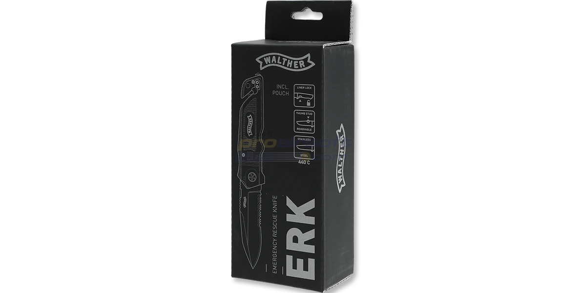 Walther ERK Emergency Rescue Folding Knife – 440C Steel Blade with Belt Cutter and Glass Breaker
