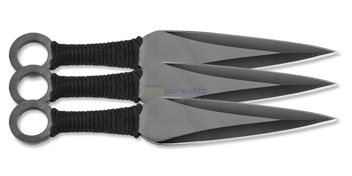 Tämä kolmen kunai-tyyppisen heittoveitsen setti on erinomainen valinta heittotaitojen harjoitteluun tai koristeelliseksi osaksi veitsikokoelmaa. Jokainen veitsi on tasapainotettu optimaalisen lentoradan saavuttamiseksi ja sopii sekä aloittelijoille että kokeneille harrastajille.
