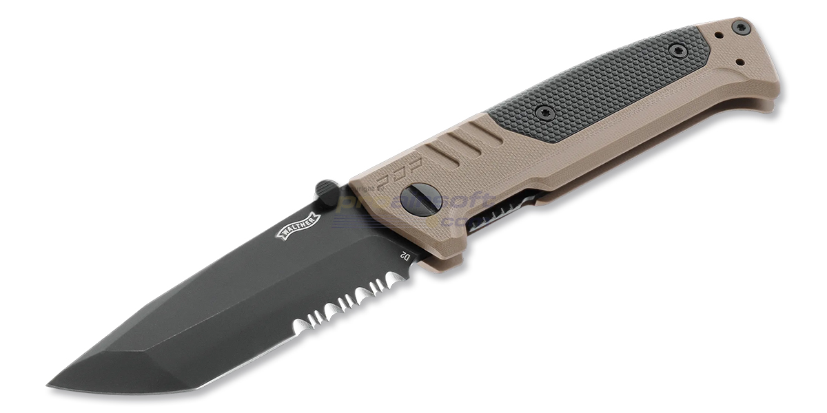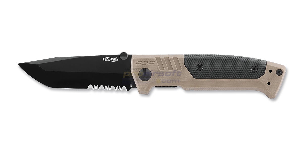Walther PDP Tanto Serrated taittoveitsi — D2-terä, osittain hammastettu, hiekka