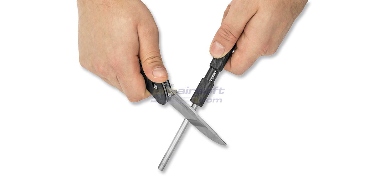Karbidikynnys asettaa terän kulman valmiiksi ja poistaa materiaalia tehokkaasti, jolloin pahasti tylsistynyt tai vaurioitunut terä saadaan nopeasti kuntoon. Tämän jälkeen timanttipuikko viimeistelee leikkuureunan ja tekee siitä tasaisen ja terävän. Säännöllisessä huollossa pelkkä timanttipuikko riittää.